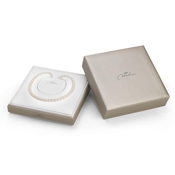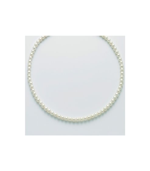 Collana di perle bianca qualità rara, grandezza 5-5.5 con chiusura a moschettone in oro bianco 750.