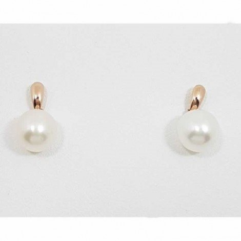 Orecchini in oro rosa con perla naturale diametro 7-7,5.Chiusura con farfallina.