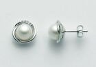 orecchini ad ago in oro bianco 750/.. con al centro una perla di acqua dolce 7-7,5 con 6 diamanti GSI per un totale di 3 punti
