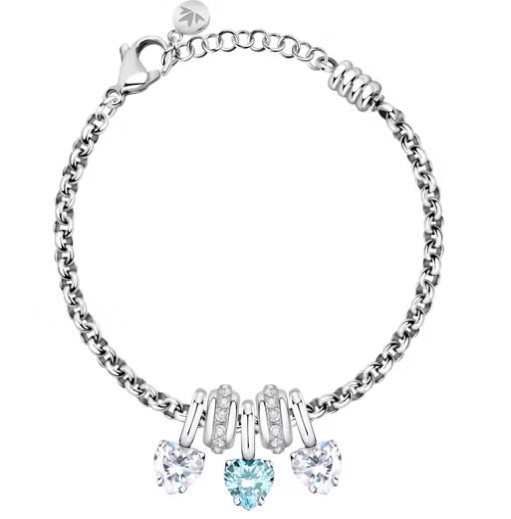 BRACCIALE MORELLATO DROPS - SCZ1353 - Genere : Donna, Misura: 16|3, Colore: Silver, Morellato experience: Drops, Modello: Pendente, Materiale: Acciaio, Cristalli, Gemme, Peso: 14,600 gr, Diametro Perle: Varie mm, Pietra: Zirconi, Colore pietra: Bianco, Blu, Simbolo: Cuore, Certificato di autenticità: Sì, Confezione: Originale Morellato