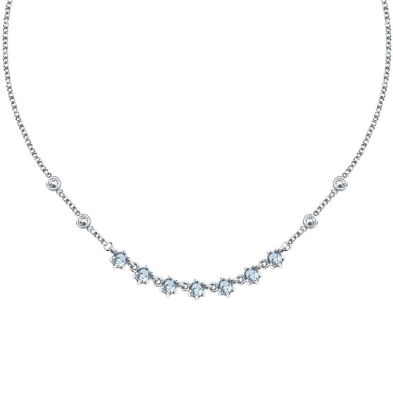 COLLANA MORELLATO COLORI - SAVY14 - Genere : Donna, Colore: Silver, Morellato experience: Fashion, Materiale: Acciaio, Placcatura rodio, Cristalli, Peso: 7 gr, Pietra: Cristalli, Colore pietra: Azzurro, Certificato di autenticità: Sì, Confezione: Originale Morellato
