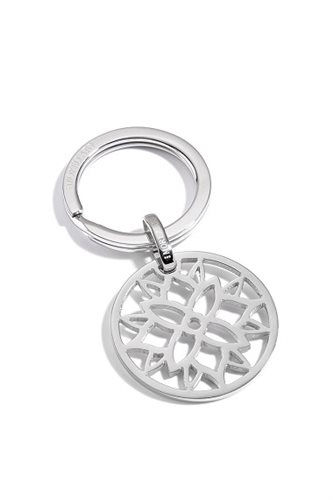 Portachiavi donna in acciaio 316L , lunghezza totale cm 7 , diametro cerchio cm 3.5 .Immagine indicativa , la confezione può variare di forma e colore.