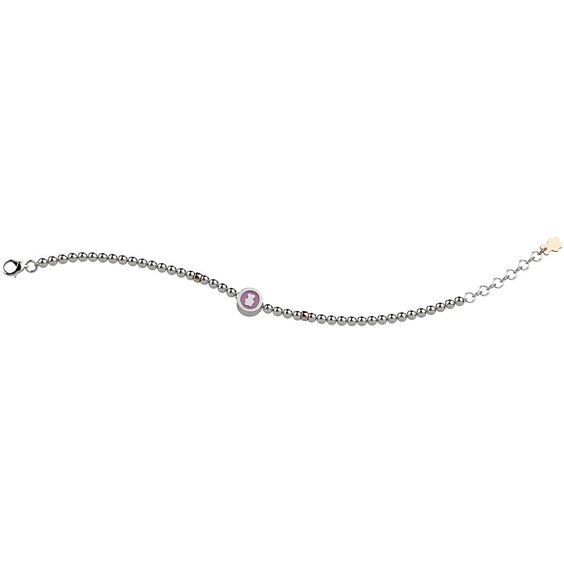 bracciale in argento 925 con orso smaltato in rosa misura da 13 a 16 cm grazie ad una catenella di allungamento