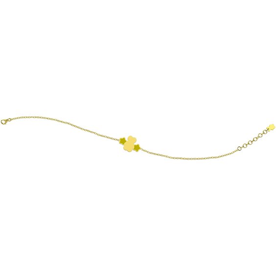 Bracciale in oro 9 kt da bimbo con targhetta con orsetto con stelline gialle in smalto. misura regolabile 13-15 cm. In regalo il bellissimo orso Tato in peluches da 18 cm.