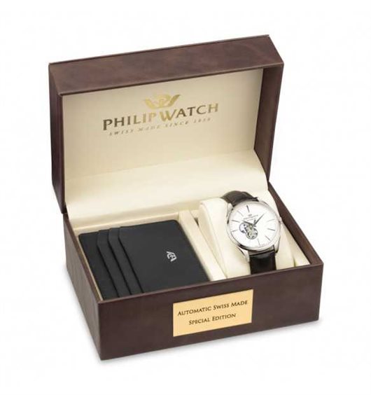 Philip Watch orologio R8221217006 Orologio da uomo con movimento automatico SELLITA SW200 con rotore personallizato e funzioni di solo tempo. Cassa rotonda in acciaio inox dal diametro di 41 mm. Fondello a vite. Quadrante bianco con movimento a vista e indici a bastoni. Vetro zaffiro antiriflesso. Cinturino in pelle nera con stampa coccodrillo; chiusura deployante con pulsanti. Resistente all'acqua fino a 50 metri di profondità.