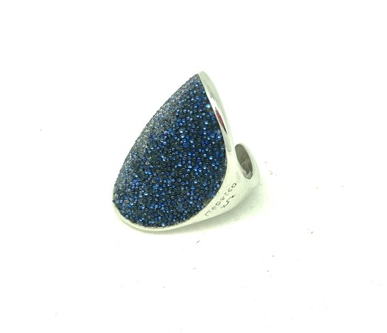 Anello in bronzo rodiato con decoro 3*3 in polvere di swarovski blu.