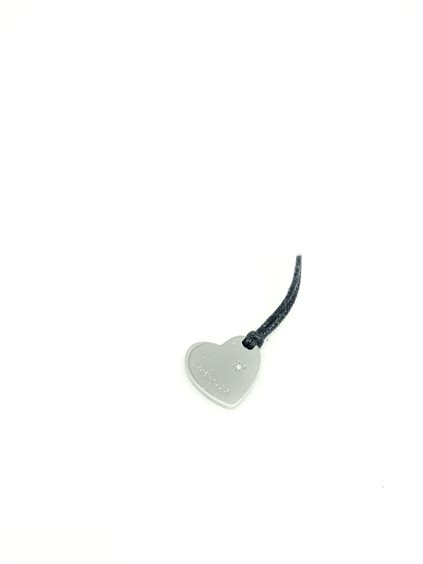 Ciondolo a cuore in acciaio con diamante incastonato in 6 graffe. fornito con cordino cerato nero.