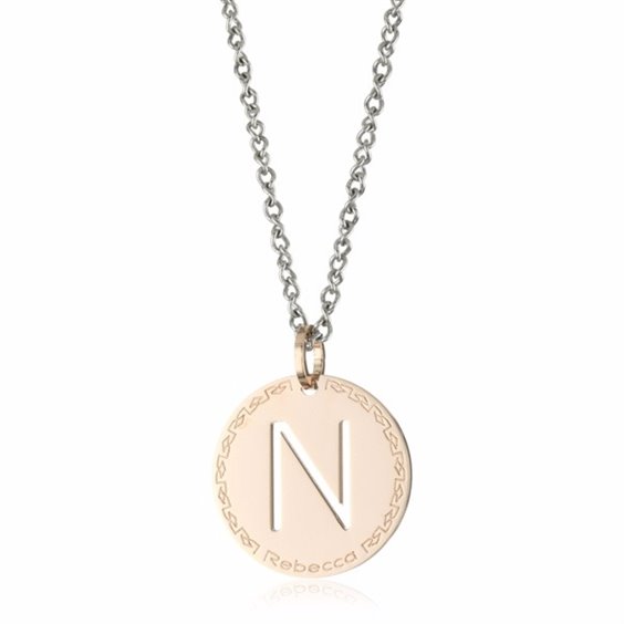 Catena in acciaio con con ciondolo in bronzo con iniziale N.