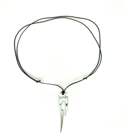 Ciondolo in acciaio con tribale, fornito su cordino cerato nero.