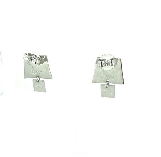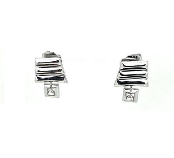 Orecchini a lobo con ciondolino pendente con swarovski quadrato.