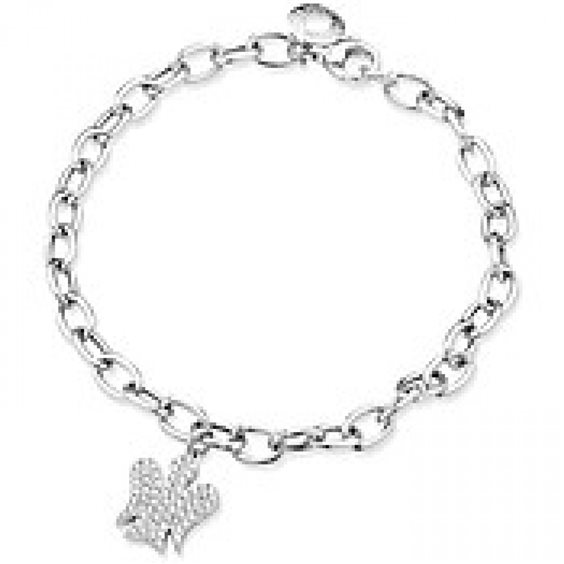 BRACCIALE IN ARGENTO CON Angelo charm 'double face' in argento e zirconi bianchi. Lunghezza bracciale cm. 19, angelo base 1.2 cm. Altezza 1.5 cm.