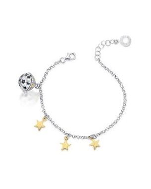 Bracciale con catena rolò e stelline appese in argento dorato cm 0.7 cm e chiama angeli in argento e zirconi e stelline.