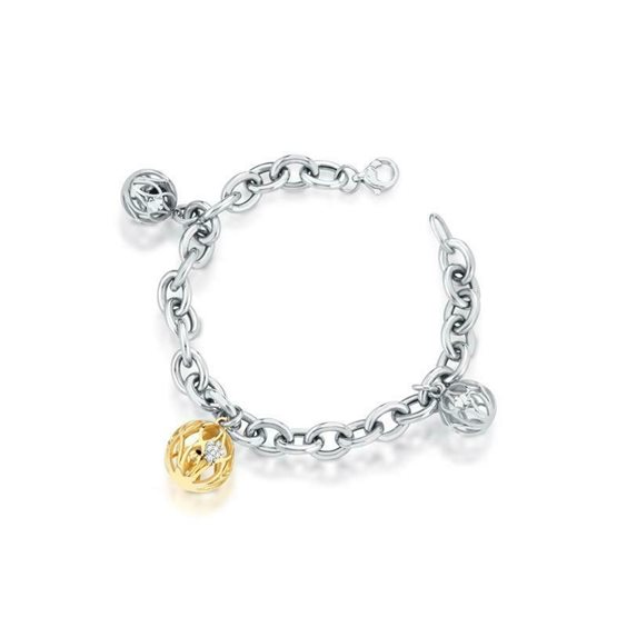 Con il suo aspetto raffinato il bracciale con pendente chiama angeli è un gioiello dal design moderno, un accessorio protagonista di ogni look che dona stile e protezione a chi lo indossa. Il bracciale è realizzato con una maglia a catena che è reso unico dai tre chiama angeli pendenti. Il primo in argento giallo è intagliato in maniera leggera e raffinata, emette un delicato tintinnio di emozioni che lo rendono richiamo prezioso per l'angelo in zirconi bianchi incastonato nella parte anteriore. Gli altri chiama angeli in argento sono più piccoli ma altrettanto preziosi, con un angelo che simboleggia la protezione che regala il gioiello. Dimensioni: lunghezza bracciale 19 cm diametro sfera 1,5 cm diametro sfera 1,2 cm