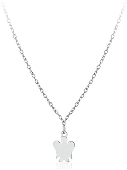 Collana bimbo/a in oro giallo 375/.. con pendente angelo in oro bianco, catena lunga cm 38 accorciabile a 36 cm. angelo cm 0,85