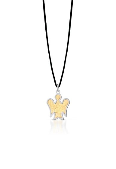 Pendente Angeli 'Piccolo', Pendente In Oro 750. Comprensivo Di Laccetto In Filo Cerato Nero - Angelo: Base 1,2 Cm - Altezza 1,3 Cm.