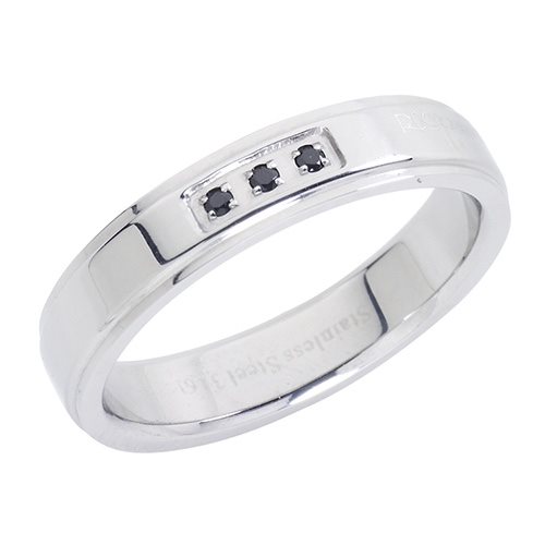 Anello Rosso Amante in Acciaio e spinelli neri naturali. Misura 24.