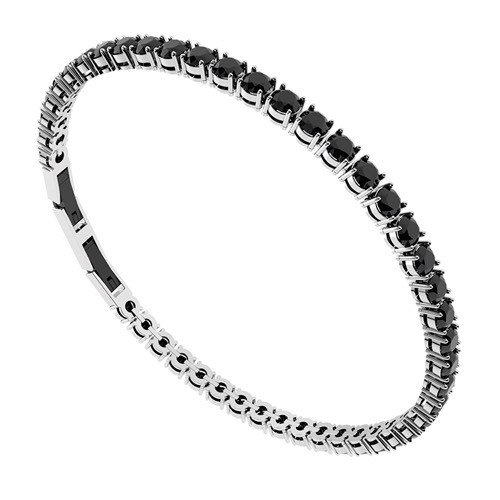 Bracciale uomo in acciaio 316L, tipo tennis con spinelli neri incastonati, lunghezza cm20, accorciabile da soli a cm 19.