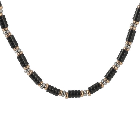 Collana in acciaio nero a barilotti con intermezzi in acciaio e acciaio rosa.