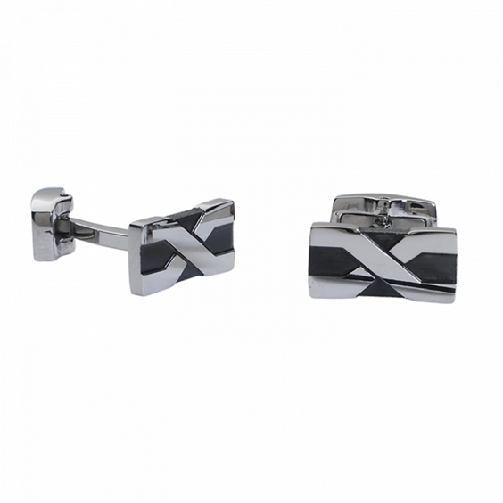 Gemelli in acciaio con decoro in acciaio nero. 15 mm * 7 mm