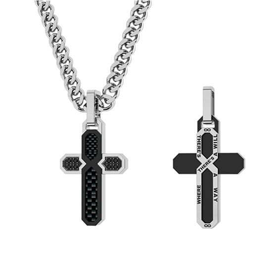 COLLANA IN ACCIAIO PVD, FIBRA DI CARBONIO E SPINELLI -REVERSIBILE