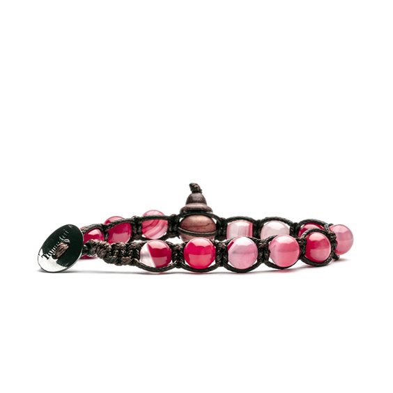 In Tibet i gioielli hanno un forte valore simbolico e tramandano valori culturali e religiosi antichissimi. Nella tradizione buddhista le gemme e i gioielli servono come metafore per gli ideali della fede ed esprimono misteriose condizioni spirituali e attributi interiori nascosti. Tamashii (o Shamballa) è un bracciale utilizzato dai monaci tibetani per favorire la meditazione, per le pratiche religiose e come talismano. Infatti Tamashii significa “anima” e il termine deriva da 'tama' che significa “gioiello”, quindi “gioiello dell’anima”. Chi lo indossa persegue un ideale di pace e di amore verso se stesso e verso il mondo, il bracciale aiuta a proteggere la sua anima, a farla crescere e farle trovare un ruolo ed un senso all'interno della vita. Prodotto realizzato in Tibet e benedetto da monaci buddisti. Bracciale Tamashii Tradizionale a 1 giro Bracciale tradizionale originale tibetano (Shamballa) realizzato in Tibet con pietre naturali dure, semi-preziose e preziose e benedetto da monaci Buddisti. Ogni bracciale Tamashii è caratterizzato dalla presenza della Calabash (zucca) e dal bottone inciso Tamashii. Il rosso nel buddismo è il colore dei rituali e delle azioni potenti, è il colore della passione, della forza e del sacro. Il Tamashii rosso induce forza, vigore, vitalità, passione e indica una persona saggia. Le striature pur conferendo unicità ad ogni pietra, sono considerate metafora per sottolineare l’uguaglianza di base di tutti gli esseri viventi. Bracciale originale tibetano Tamashii realizzato con pietre naturali AGATA CILIEGIA STRIATA. Unisex e taglia unica (il bracciale è predisposto per adattarsi a qualsiasi diametro di polso). Ogni bracciale è spedito con relativa confezione originale e certificato di garanzia.