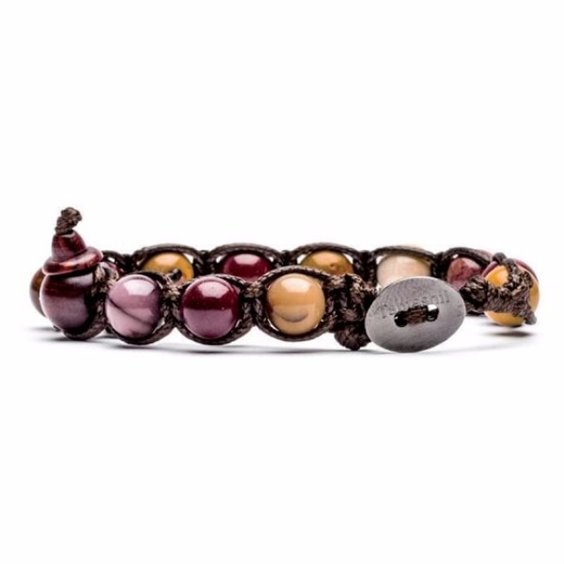 In Tibet i gioielli hanno un forte valore simbolico e tramandano valori culturali e religiosi antichissimi. Nella tradizione buddhista le gemme e i gioielli servono come metafore per gli ideali della fede ed esprimono misteriose condizioni spirituali e attributi interiori nascosti. Tamashii (o Shamballa) è un bracciale utilizzato dai monaci tibetani per favorire la meditazione, per le pratiche religiose e come talismano. Infatti Tamashii significa “anima” e il termine deriva da 'tama' che significa “gioiello”, quindi “gioiello dell’anima”. Chi lo indossa persegue un ideale di pace e di amore verso se stesso e verso il mondo, il bracciale aiuta a proteggere la sua anima, a farla crescere e farle trovare un ruolo ed un senso all'interno della vita. Prodotto realizzato in Tibet e benedetto da monaci buddisti. Bracciale Tamashii Tradizionale a 1 giro Bracciale tradizionale originale tibetano (Shamballa) realizzato in Tibet con pietre naturali dure, semi-preziose e preziose e benedetto da monaci Buddisti. Ogni bracciale Tamashii è caratterizzato dalla presenza della Calabash (zucca) e dal bottone inciso Tamashii La Mokaite è una pietra naturale (Diaspro Australiano) dai colori variegati che vanno dal bianco al giallo-arancioviola. Non ha significati precisi nel mondo buddista ma si è diffuso nel sud est asiatico per fini ornamentali, grazie alla bellezza della pietra, alla discreta diffusione e alla provenienza dalla “vicina” Australia. Questo Tamashii ha valenza principalmente ornamentale. Bracciale originale tibetano Tamashii realizzato con pietre naturali MOKAITE. Unisex e taglia unica (il bracciale è predisposto per adattarsi a qualsiasi diametro di polso). Ogni bracciale è spedito con relativa confezione originale e certificato di garanzia.