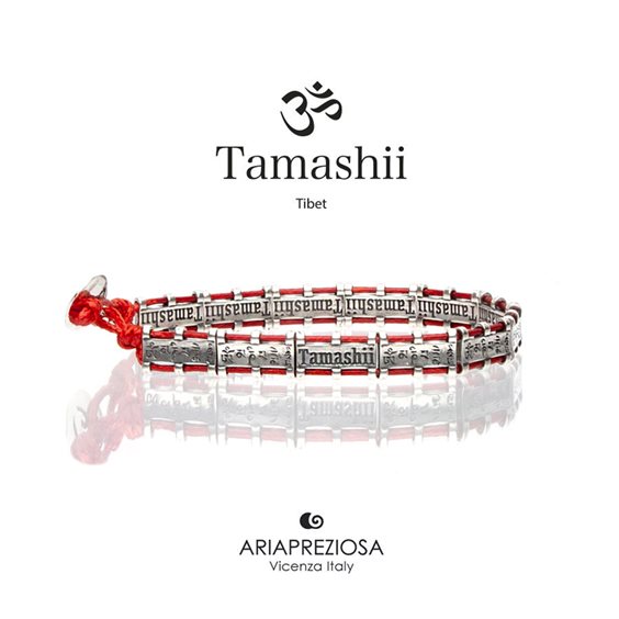 Le bandiere della preghiera Lung-Ta sono poste in luoghi estremamente isolati come sulle cime delle montagne Himalayane, in ambienti più comuni come case oppure in luoghi di culto come monasteri e templi Buddhisti. Su di esse sono impressi dei Mantra che invocano armonia, compassione, saggezza, forza, pace e protezione. Si ritiene che il vento trasporti nell'aria, e nei luoghi circostanti, le benedizioni delle preghiere riportate su di esse. La linea richiama questi strumenti spirituali che secondo la cultura Tibetana sono in grado di portare pace, felicità e prosperità. Bracciale unisex originale Tibetano Tamashii della linea Bandiere Tibetane realizzato in Argento 925 e cordoncino rosso. Sul bracciale è inciso il Mantra “Om Mani Padme Hūm” del Buddha della compassione Cenresig, all'interno invece è inciso il logo Tamashii. Misura MEDIUM singolo elemento: 12 mm Taglia unica: il bracciale è predisposto per adattarsi a qualsiasi polso grazie alle asole già presenti (dove verrà infilato il bottone), una volta scelta la misura si può tagliere il cordoncino.