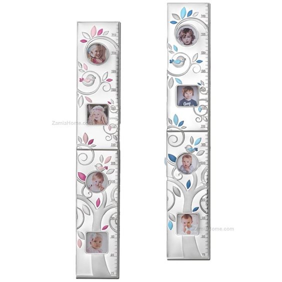 Thilia argenti Cornice metro bimba in argento 925 bilaminato con smalti rosa Albero della vita Cornice da appendere con tacche in scala millimetrica per misurare l'altezza. La cornice ha una cerniera centrale che permette di ripiegarla. Retro legno color bianco