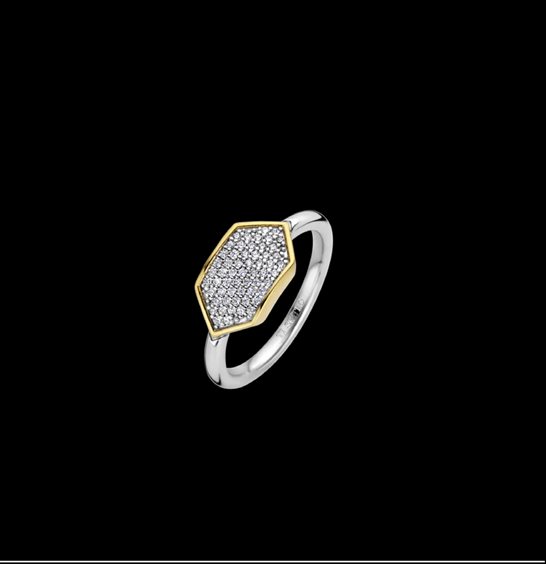 Questo anello d'argento TI SENTO 12310ZY colpisce lo sguardo con l'incantevole pavé di pietre di zirconia cubica incorniciato in una accattivante forma geometrica abbracciata da una montatura placcata oro giallo. La lucentezza delle pietre di zirconia cubica è valorizzata dalla montatura lussuosa e sofisticata. L'anello è realizzato in argento sterling 925 di alta qualità ed aggiunge un tocco vintage anche al più classico degli outfit. Una vera e propria dichiarazione di stile. Tutti i nostri anelli sono privi di nickel e ipoallergenici. Il TI SENTO Anello 12310ZY è realizzato in Argento sterling color oro. Questo anello è di colore Zircone bianco con placcatura d'oro giallo. Ogni gioiello TI SENTO viene confezionato con amore e infinita cura in un bellissimo cofanetto regalo. La magia sta nel nostro argento.