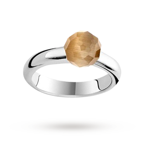 Anello in argento con pietra rotonda sfaccettata color occhio di tigre.