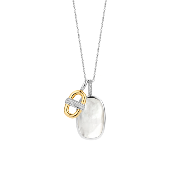 .Una collana scintillante, in grado di illuminare ogni look. Il suo temperamento si esprime nel pavé di zirconi bianchi su un elemento ovale placcato oro giallo.