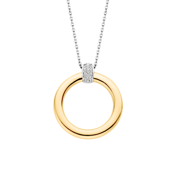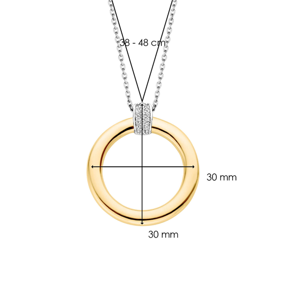 Collana in argento rolò lunga 48 cm con anellini finali per accorciarla. Ciondolo rotondo con zirconi placato oro giallo.