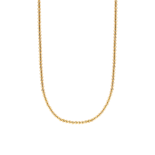 Collana in argento a palline di 5mm rodiate oro giallo 14 kt, con catenella finale.