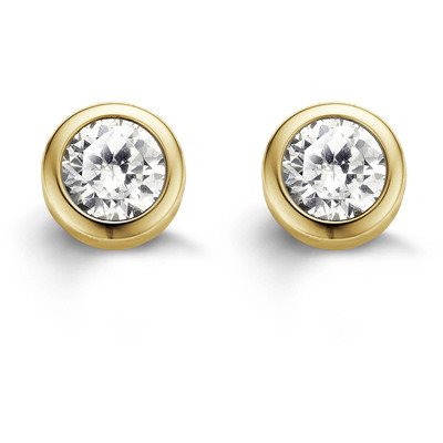 Orecchini in argento rodiati in oro giallo 14 kt con zircone 5mm