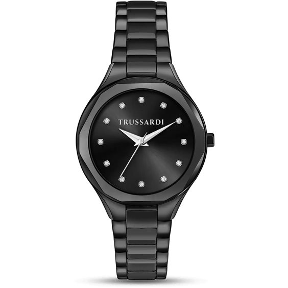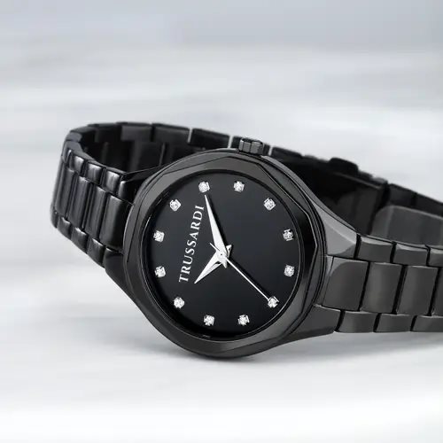 OROLOGIO TRUSSARDI SMALL WRIST - R2453157501 - Genere: Donna, Materiale e finitura cassa: Acciaio, Diamanti, Lega di metallo, Misura cassa: 32mm, Spessore cassa: 8,00, Finitura cassa: Lucido, Colore cassa: Nero, Vetro: Vetro minerale, Materiale cinturino: Metallo, Colore cinturino: Nero, Chiusura: Fibbia deployante con pulsanti, Movimento: Quarzo, Water resistant: 5 atm, Garanzia: Ufficiale 2 anni Trussardi, Confezione: Originale Trussardi