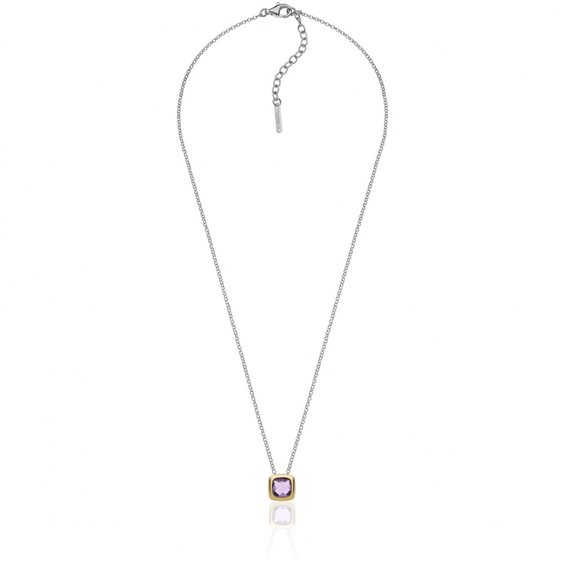 Collana rolò in argento con ciondolo rodiato in oro giallo quadrato con incastonata un' ametista sfaccettata.