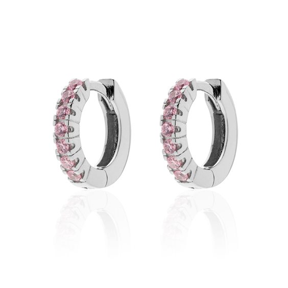 Orecchini a cerchietto in argento 925 di diametro 1,30 cm con pietre zirconia cubica rosa. Un accessorio romantico che in un delicato gioco di luce e colore renderà unico il tuo stile. Mixali insieme agli altri cerchietti colorati o abbinali al raffinato bracciale Tennis rosa.