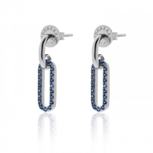 Orecchini in argento 925 rodiato con semi-cerchio e maglia paper clip con zirconi azzurri. Risplendi con questi graziosi orecchini tempestati da pietre scintillanti e colorate. Lasciati conquistare dalla paper clip mania e collezionali tutti! Completa il look con gli altri gioielli della collezione FANCY firmata UNOAERRE.