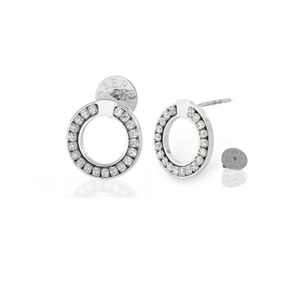 Orecchini in argento bianco 925 a forma di cerchio di diametro 1,50 cm con 20 pietre zirconia cubica bianche e chiusura al lobo con perno e farfallina. Anche se le tendenze in fatto di moda cambiano continuamente, il cerchio resta sempre il simbolo dell'eleganza classica e perfetta, emblema di infinito. Come questi meravigliosi orecchini scintillanti sono uno di quegli accessori passepartout di stile, perfetti per essere indossati in tutte le occasioni. Aggiungeranno subito un tocco di luce a tutti i tuoi outfit.