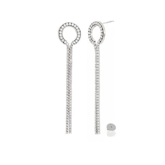 Orecchini pendenti in argento bianco 925 lunghi 6,20 cm con cerchio di diametro 1,50 cm, pietre zirconia cubica bianche e chiusura al lobo con perno e farfallina. I dettagli possono affermare la nostra personalità e fare la differenza in un look. Questi meravigliosi orecchini lunghi illumineranno il tuo sguardo ogni volta che li indosserai.