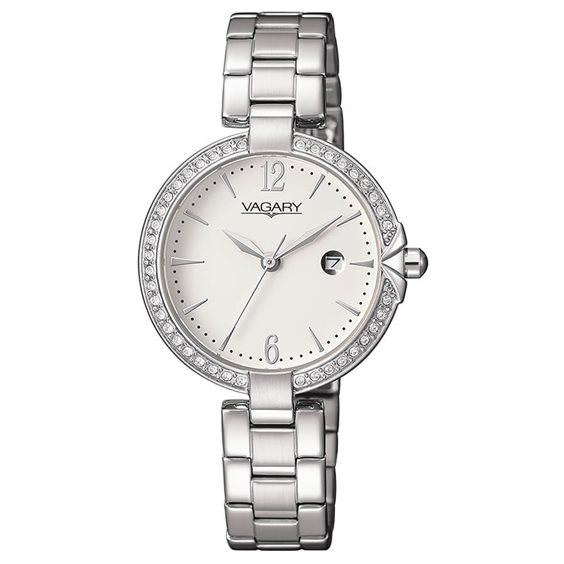 OROLOGIO CON DATARIO, IMPREZIOSITO DA STRASS SUL PERIMETRO CASSA