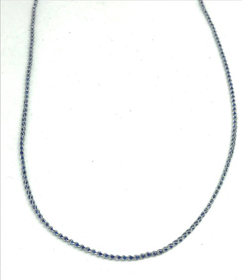 Catena in argento lucido con incastonati dei zirconi rotondi blu tra le maglie. Chiusura con diamante nero da 0.004 ct